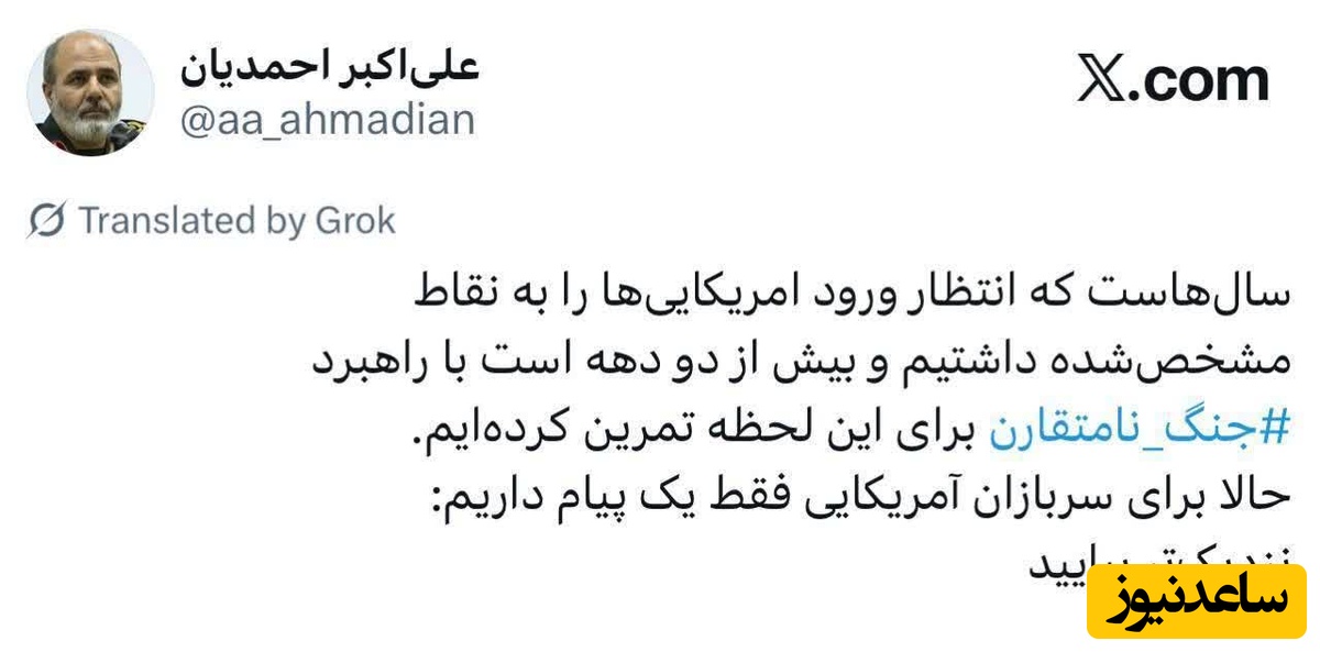 🔹حالا برای سربازان آمریکایی فقط یک پیام داریم: نزدیکتر بیایید.