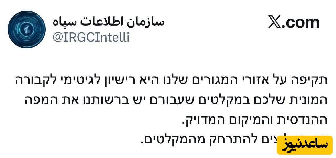 🔹همه توانمندیهای ایران را نابود کردیم. رهبران ردیف اول رژیم ایران را از بین بردیم. دیگر در ایران کسی نمیخواهد رهبر شود. ایران اینبار در موضع خود جدی است. ایران 5 روز فرصت پیش رو دارد که باید آن را مغتنم بشمارد.