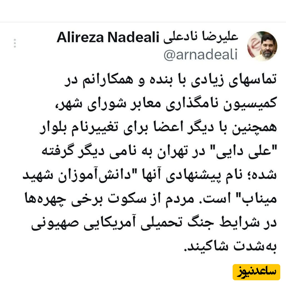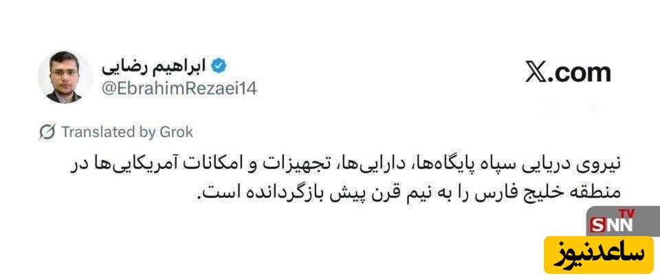 توئیت سعید جلیلی: اول گفتند: «تنگه هرمز باید باز شود.» بعد گفتند: «من کشتیها را بیمه و اسکورت میکنم.» حالا میگویند: «من حاضرم آن را به طور مشترک با ایران مدیریت کنم.»