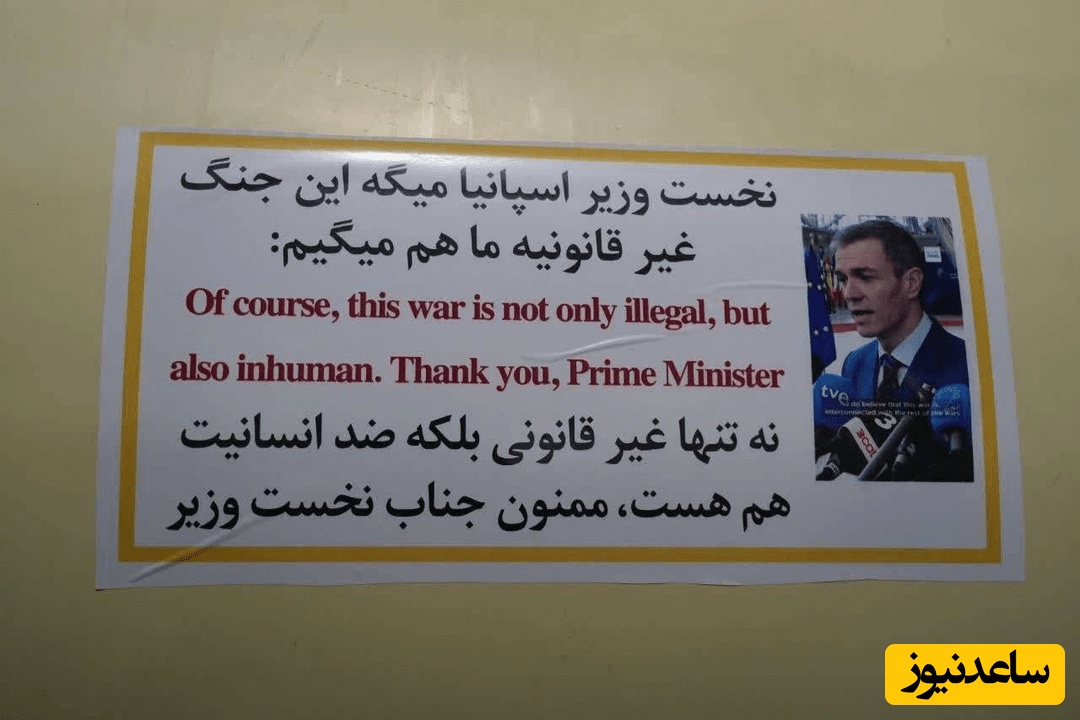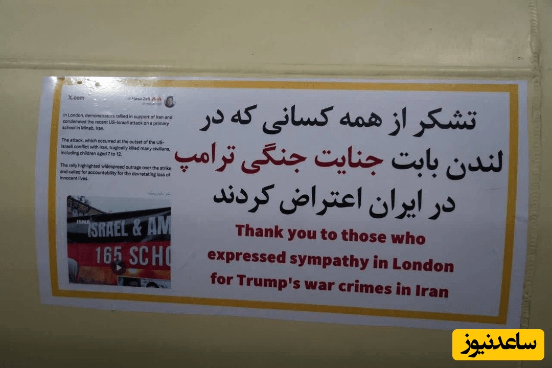 نوشتههایی مثل: «به یاد قربانیان اپستین»، «تشکر از همه کسانی که در لندن بابت جنایت جنگی ترامپ در ایران اعتراض کردند»، «نخستوزیر اسپانیا میگه این جنگ، غیرقانونیه. ما هم میگیم نهتنها غیرقانونی بلکه ضد انسانیت هم هست. ممنون آقای نخستوزیر» و...