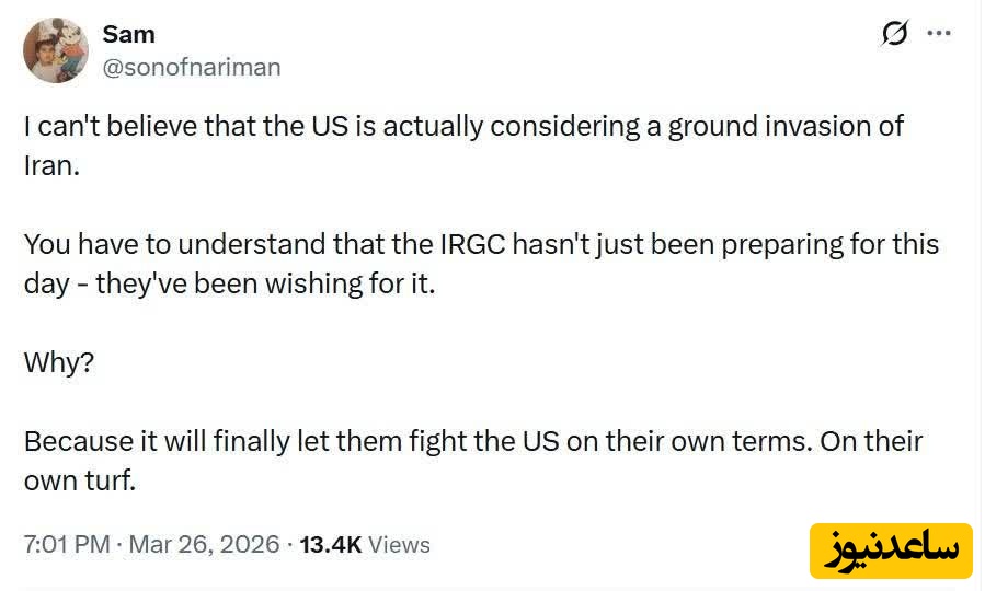 🔹باید درک کنید که سپاه پاسداران انقلاب اسلامی نه تنها برای این روز آماده شده، بلکه آرزوی آن را داشته است. چرا؟ چون چنین سناریویی بالاخره به آنها اجازه میدهد با شرایط خودشان و در زمین خودشان با آمریکا بجنگند