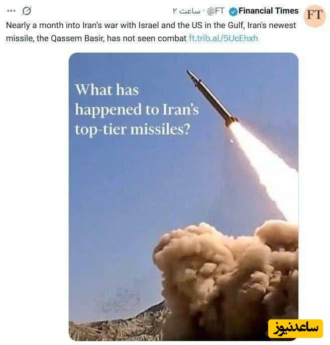 فایننشالتایمز: تقریباً یک ماه پس از جنگ ایران با اسرائیل و آمریکا در خلیج فارس، جدیدترین موشک ایران، قاسم بصیر، هنوز در میدان نبرد دیده نشده است
