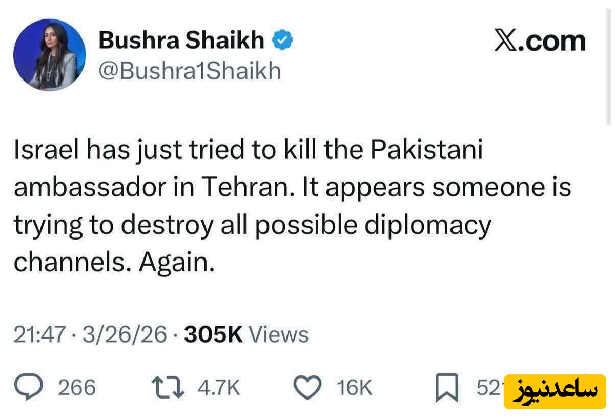 🔹️اسرائیل به تازگی سعی کرده سفیر پاکستان در تهران را بکشد. به نظر میرسد کسی در تلاش است تا تمام کانالهای دیپلماتیک ممکن را از بین ببرد. دوباره.