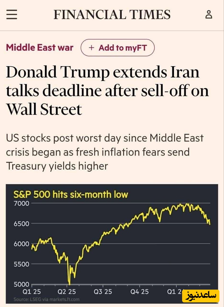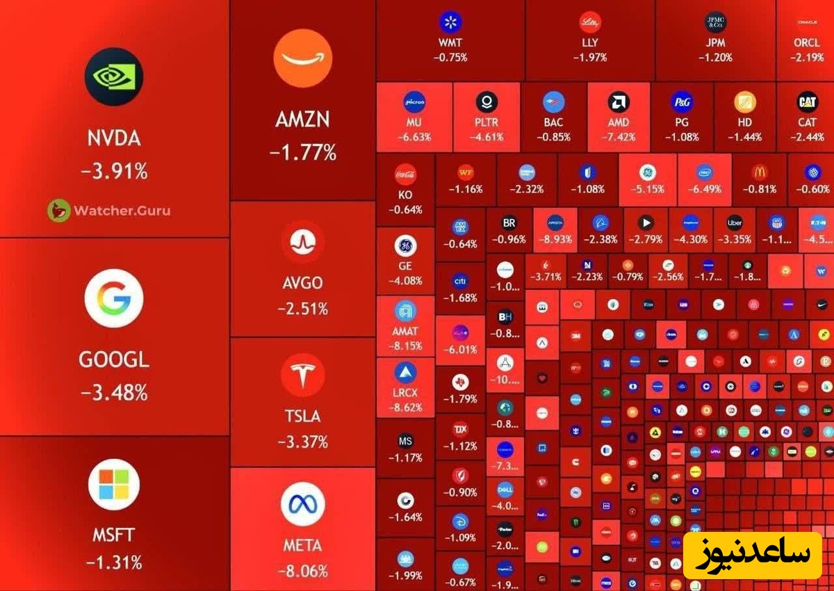 🔹شاخص اس.اند.پی 500 با 1.7 درصد کاهش، به سوی پنجمین هفته متوالی ضرر پیش میرود. داو جونز 1 درصد و نزدک 2.4 درصد سقوط کردند.