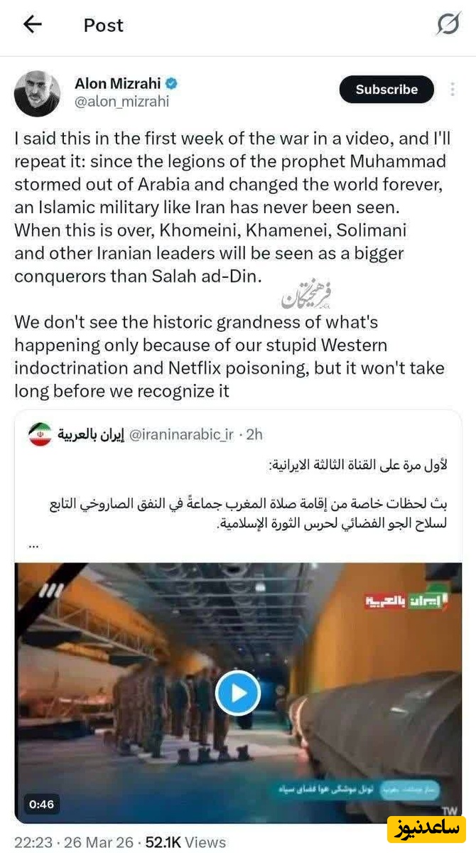 🔹 موساد میلیاردها شِکِل برای براندازی و تغییر حکومت ایران هزینه کرده اما موفق نشده است و حالا نتانیاهو دنبال قربانی و مقصر میگردد! من باور ندارم که موساد موفق به براندازی حکومت ایران شود.