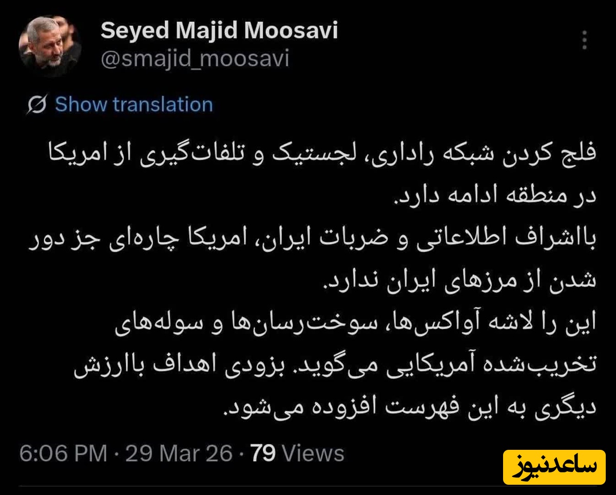 🔹«ترامپ سعی کرد رهبران ایران را تا سر حد مرگ بترساند و آنها را به رنج بیندازد، اما میدانید چه کسی واقعاً ترسیده؟ خودِ دونالد ترامپ»
