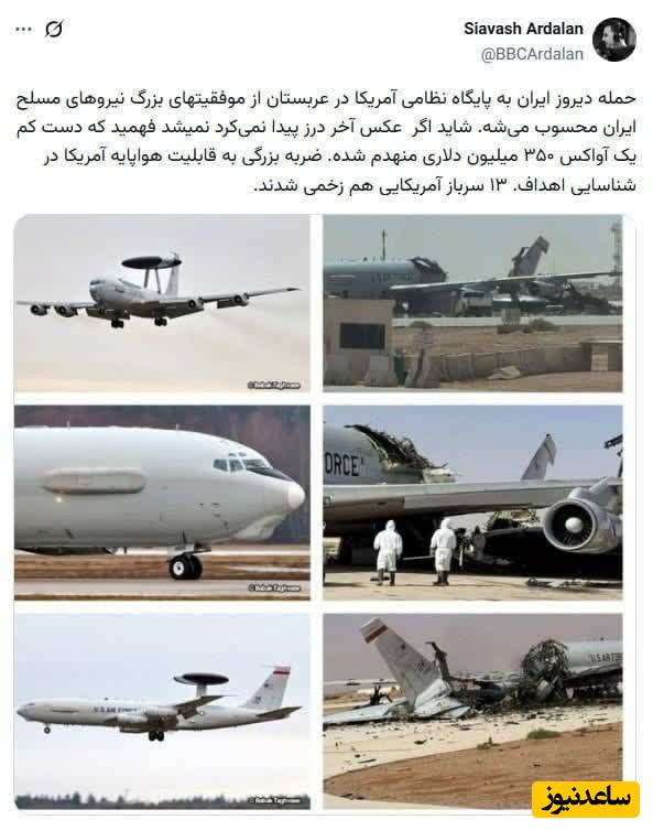 اگر این عکس آخر درز پیدا نمیکرد، نمیشد فهمید که یک آواکس 350 ملیون دلاری منهدم شده.