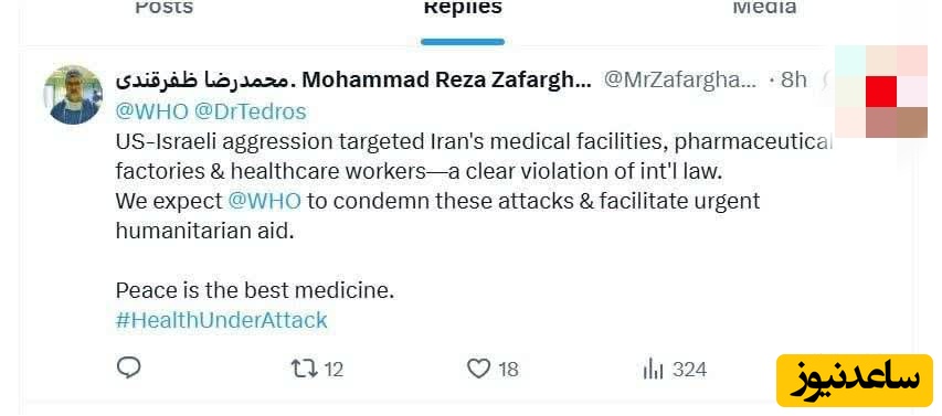 🔹 ما از سازمان جهانی بهداشت انتظار داریم این حملات را محکوم کند و زمینه ارسال فوری کمکهای بشردوستانه را فراهم سازد.