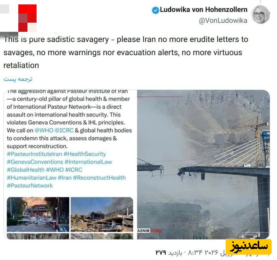 🔹این یک وحشیگری کاملاً سادیستی است. لطفاً ایران، دیگر هیچ نامه متفکرانهای برای وحشیها ننویس، دیگر هیچ هشدار یا اعلام تخلیهای نده، و دیگر هیچ انتقام شرافتمندانهای نداشته باش.
