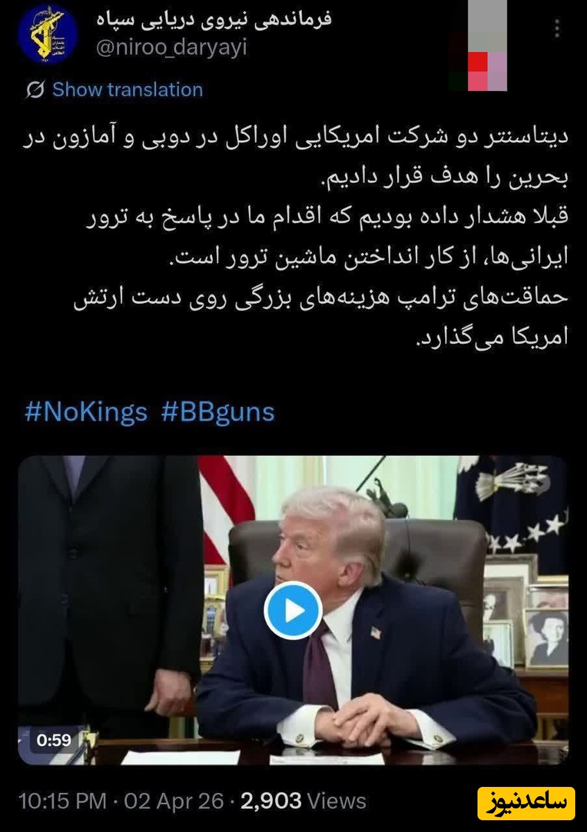 🔹 دیتاسنتر دو شرکت امریکایی اوراکل در دوبی و آمازون در بحرین را هدف قرار دادیم.