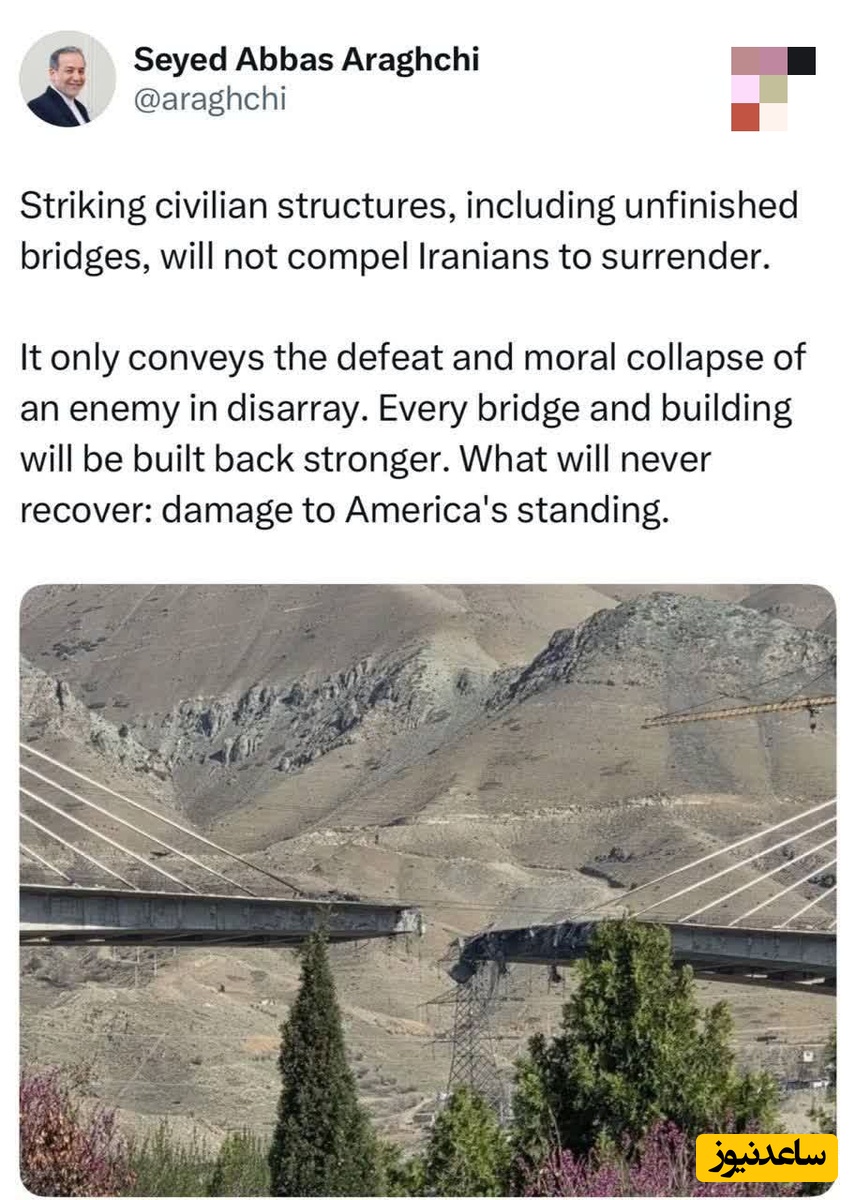 🔹هدف قرار دادن زیرساختهای غیرنظامی، از جمله پلهای نیمهکاره، هرگز ایرانیان را به تسلیم وادار نخواهد کرد.