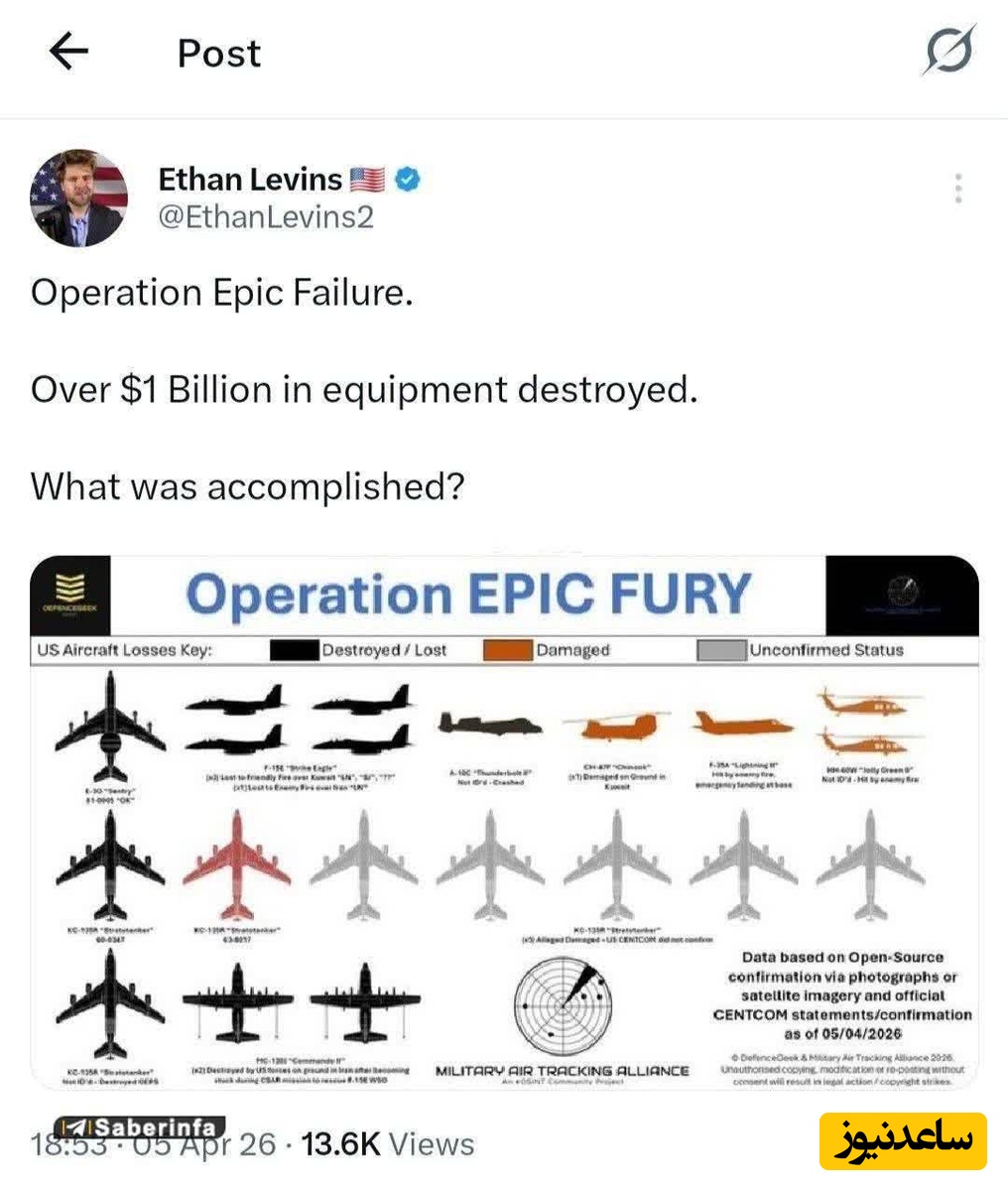 فورکان گوزکارا» استاد دانشگاه استانبول با انتشار تصاویر انهدام بالگردهای آمریکایی در ایران در سال 1980 و 2026: نمیدانستم این اتفاق سال 1980 هم افتاده است. ایران رسماً دوباره تصاویر سال 1980 را به اشتراک گذاشت و این یعنی تحقیر مطلق ترامپ.