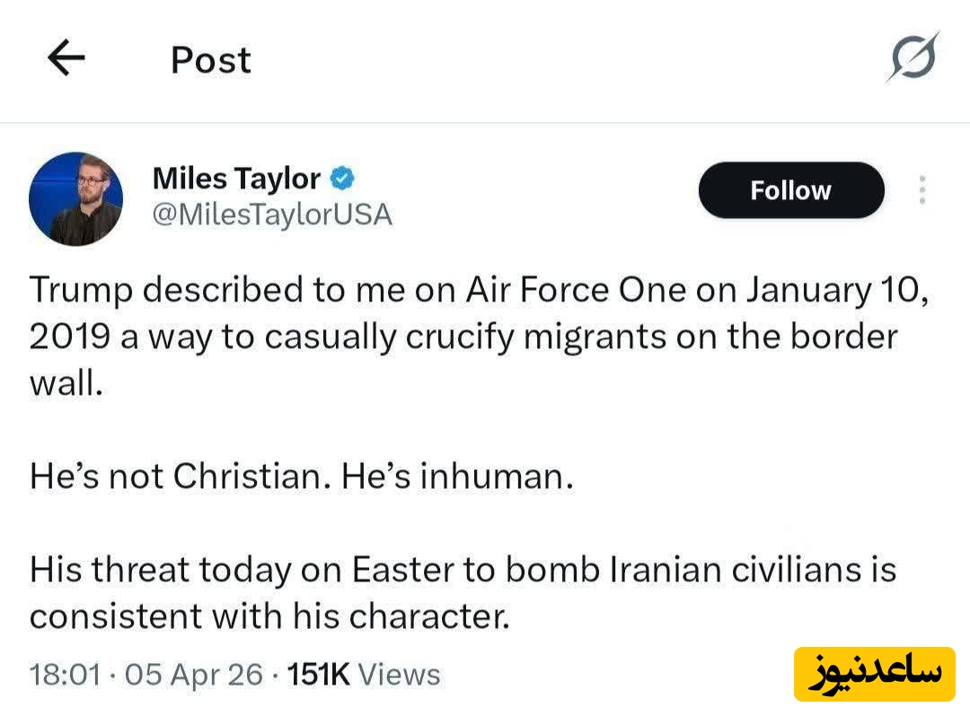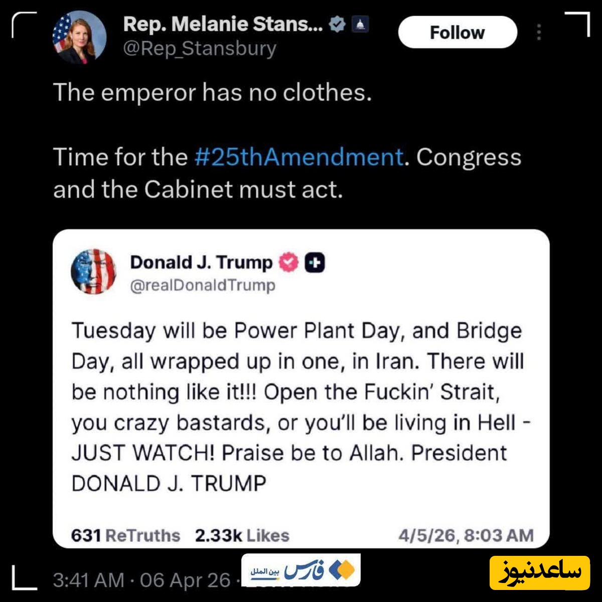 🔹دیروز، ترامپ در یک اظهارنظر مستأصلانه و رکیک، آشکارا تهدید به ارتکاب جنایات جنگی بیشتری کرد.