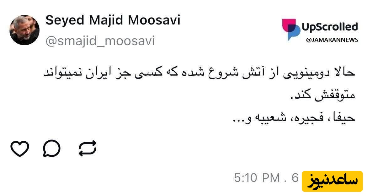 ▫️ما در حال نابود کردن آنها در ایران هستیم و اگر تسلیم نشوند، دیگر نیروگاه یا پلی برایشان باقی نخواهد ماند.