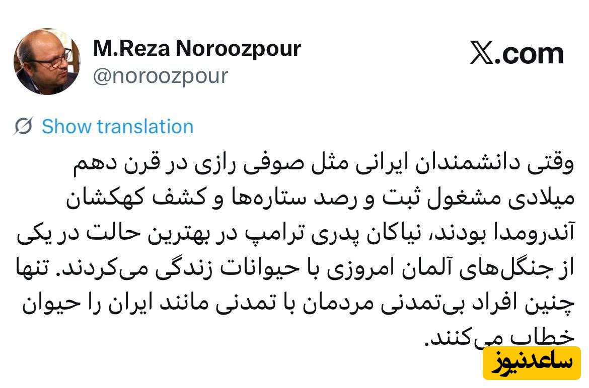 به گزارش سرویس سیاست ساعدنیوز، در دنیای سیاست مدرن، گاهی زبان دیپلماسی جای خود را به تقابلهای فرهنگی و تاریخی میدهد. توئیت اخیر محمدرضا نوروزپور، فراتر از یک واکنش گذرا، نقبی به حافظه تاریخی جهان است. او با دست گذاشتن بر نقاط قوت علمی ایران زمین در قرن دهم میلادی، تلاش کرده است تا شکاف تمدنی میان شرق و غرب را در زمانی بازنمایی کند که ایران قطب دانش جهان بود و اروپا در دوران تاریکی خود بهسر میبرد. این نوشتار به بررسی منطق تاریخی این پیام و وزن تمدنی آن میپردازد.
