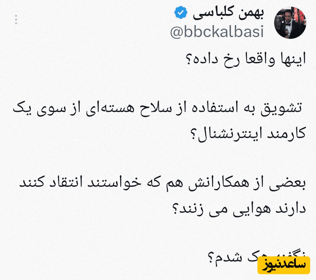 ماجرا از این قرار است که بی علیحسین قاضیزاده، عضو تحریریه اینترنشنال طی توییتی به ترامپ پیشنهاد برخورد هستهای کرد.