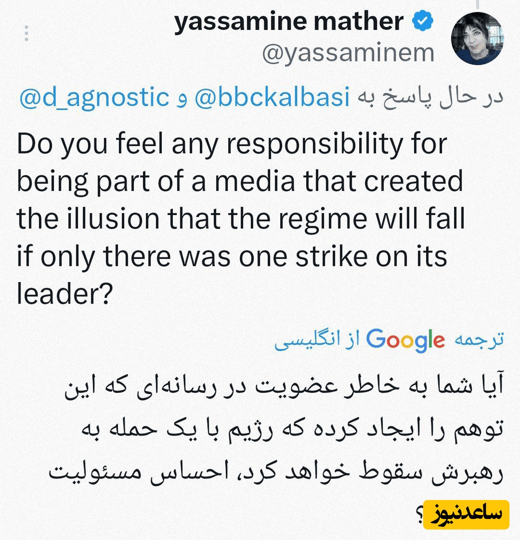 البته این جو قطعا از این رسانه ضدانقلاب در فضای خارج از کشور منتشر شده و هنوز هم افراد فارسی زبانی هستند که با وجود کشتار مردم ایران در خیابانهای کشورهای غربی به رقص و پایکوبی و تشکر از ترامپ و نتانیاهو برای حمله به کشورمان میپردازند.