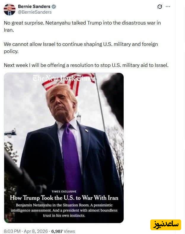 🔹️هفته آینده قطعنامهای برای توقف کمکهای نظامی آمریکا به اسرائیل ارائه خواهم داد.
