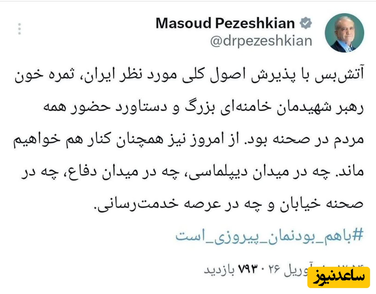 ◽️با کمال تواضع، خرسندم اعلام کنم که جمهوری اسلامی ایران و ایالات متحده آمریکا، به همراه متحدان خود، با برقراری آتشبسی فوری در همه مناطق، از جمله لبنان و سایر نقاط موافقت کردهاند.به توافق رسیدهاند. این آتشبس از ساعت 3:30 بامداد چهارشنبه 8 آوریل 2026 به وقت رسمی ایران و ساعت 8:00 شب سهشنبه 7 آوریل به وقت شرق آمریکا اجرایی خواهد شد.
