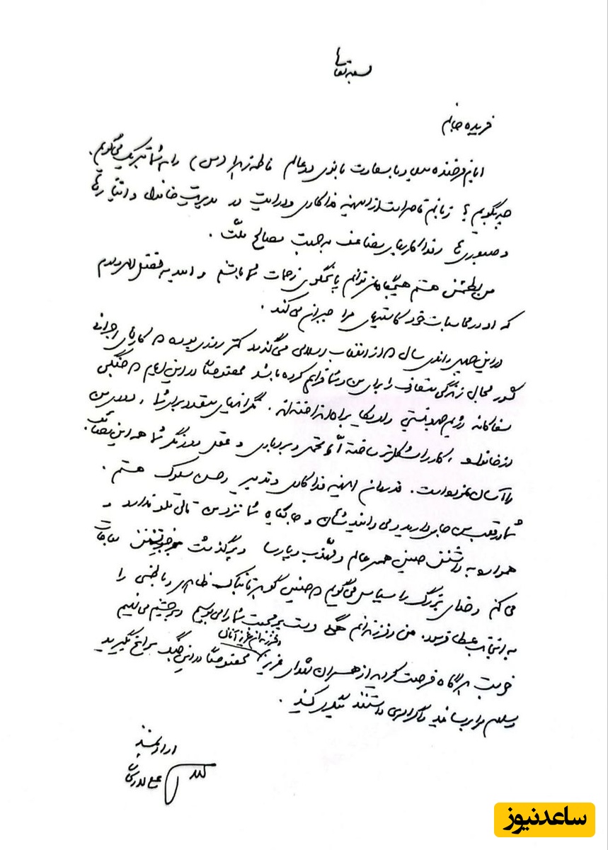 به گزارش سرویس سیاست پایگاه خبری تحلیلی ساعدنیوز به نقل از فارس، نامه ای از شهید علی لاریجانی خطاب به همسرش فریده مطهری منتشر شده است.
