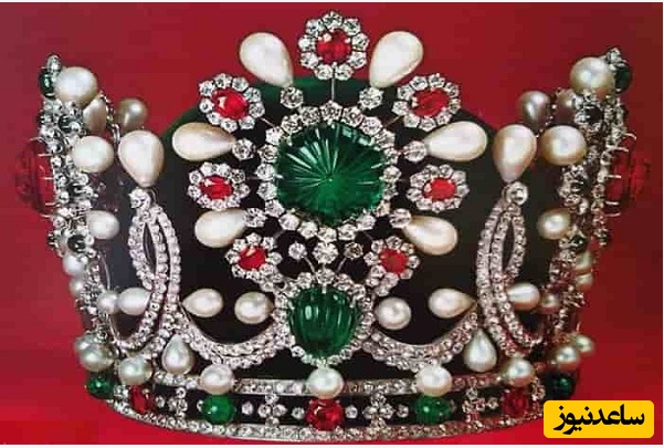 در این تاج الماس، مروارید، یاقوت و زمرد به کار رفته بود. وزنش هم یک کیلو و 489 گرم بود.