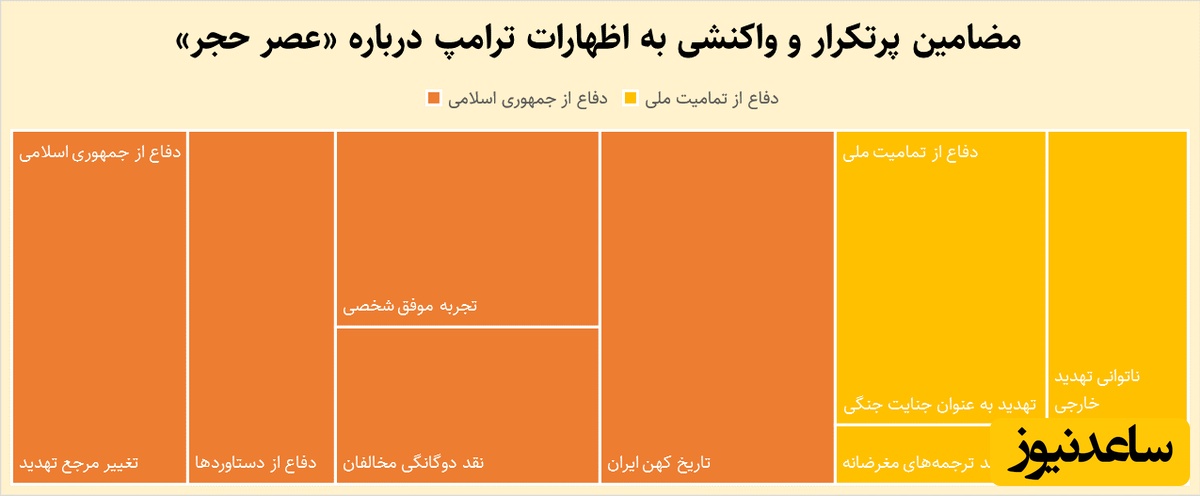 در فاصله تنها سه روز (13 تا 15 فروردین)، بیش از 63 هزار توییت و ریتوییت مرتبط با عبارت «عصر حجر» در این شبکه منتشر شد. موجی از واکنشهای قطبی، از دفاع تمامعیار از جمهوری اسلامی تا محکومیت تهدید به عنوان اهانت به تمامیت ارضی و حتی تأیید ضمنی آن توسط برخی جریانات سلطنتطلب، فضای مجازی ایران را دربرگرفت.