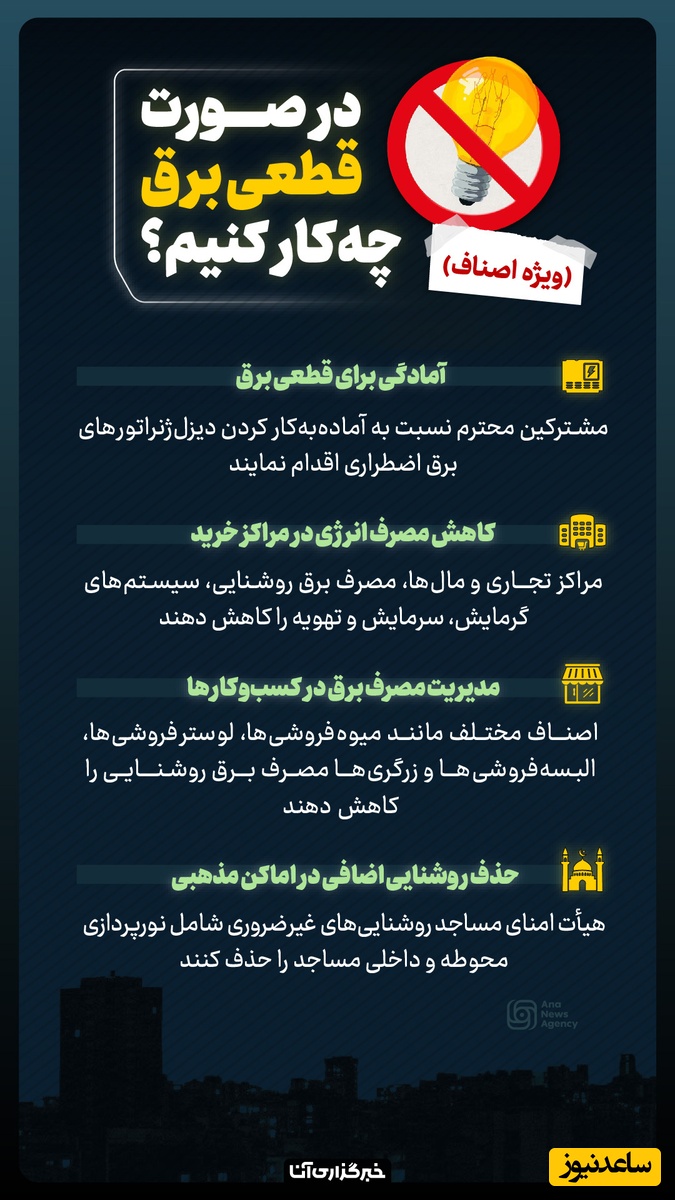 به گزارش سرویس جامعه ساعدنیوز به نقل از همشهری، مهدی مسائلی، دبیر سندیکای صنعت برق ایران در گفتگو با تلویزیون همشهری به اقداماتی که مردم در صورت قطعی برق باید انجام دهند اشاره کرد و گفت:باید مصرف در خانه ها رو به حداقل برسانیم تا امکان رساندن برق به دیگر نقاط کشور را مهیا کنیم.