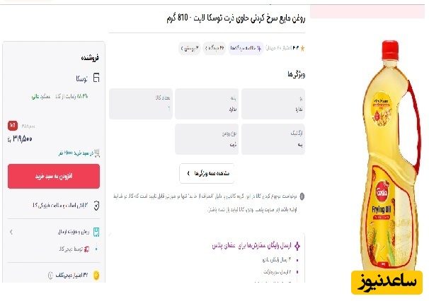 رصد قیمتی نشان میدهد که قیمت روغن مایع سرخ کردنی حاوی ذرت توسکا لایت - 810 گرمی در دیجی کالا 319 هزار و 500 تومان قیمت گذاری شده است و یا اینکه قیمت روغن آفتابگردان ویتامینه طبیعت یک و نیم لیتری 376 هزار و 700 تومان قیمت گذاری شده است که نشان دهنده افزایش قیمت در روزهای اخیر است.