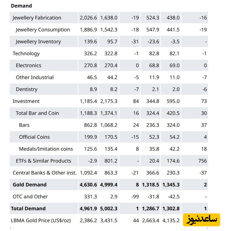 این رشد چشمگیر به دلیل فعالیتهای سرمایهگذاری بوده است، به طوری که خرید ETFهای طلا با رشد 801 تن مواجه شد و تقاضا برای سکه و شمش طلا نیز افزایش یافت. از سوی دیگر، خرید طلا توسط بانکهای مرکزی همچنان در سطح بالا باقی ماند و به 863 تن رسید. اما سرعت خریدهای بانکهای مرکزی نسبت به گذشته کاهش یافته است. این نشاندهنده تغییرات در سیاستهای پولی و تقاضای جهانی برای طلا به عنوان یک دارایی مطمئن است.