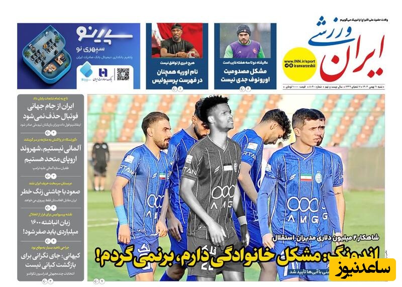 به گزارش سرویس ورزش ساعدنیوز، روزنامهها در شماره امروز خود به موضوعات مختلفی پرداختهاند؛ از گزارشهای داغ ورزشی و حواشی پیرامون تیمهای ملی گرفته تا تحلیلهای سیاسی و اقتصادی. در این میان، اخبار روز، تحلیلها و دیدگاههای تازهای به مخاطبان ارائه میدهند.