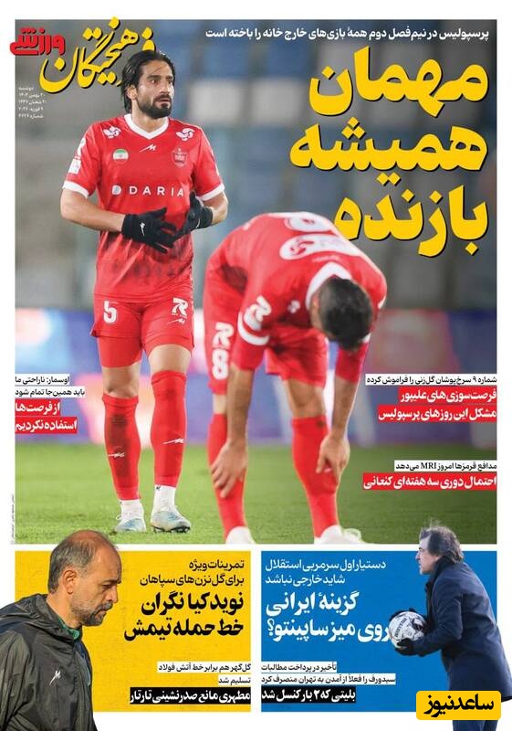 به گزارش سرویس ورزش ساعدنیوز، روزنامهها در شماره امروز خود به موضوعات مختلفی پرداختهاند؛ از گزارشهای داغ ورزشی و حواشی پیرامون تیمهای ملی گرفته تا تحلیلهای سیاسی و اقتصادی. در این میان، اخبار روز، تحلیلها و دیدگاههای تازهای به مخاطبان ارائه میدهند.