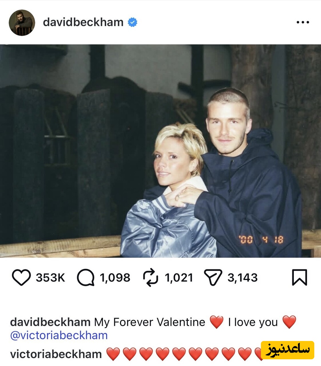 ویکتوریا هم با یک کامنت و قلب قرمز پاسخ پست دیوید بکام را داد.