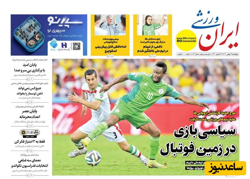 به گزارش سرویس ورزش ساعدنیوز، روزنامهها در شماره امروز خود به موضوعات مختلفی پرداختهاند؛ از گزارشهای داغ ورزشی و حواشی پیرامون تیمهای ملی گرفته تا تحلیلهای سیاسی و اقتصادی. در این میان، اخبار روز، تحلیلها و دیدگاههای تازهای به مخاطبان ارائه میدهند.
