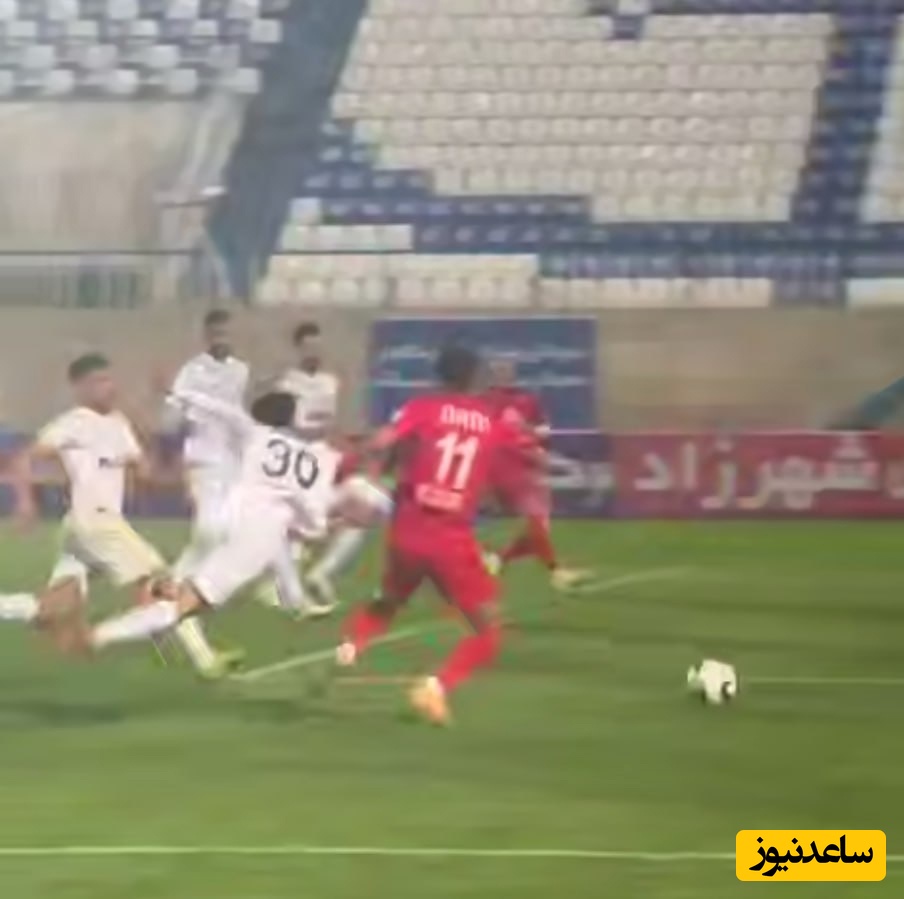 پاس چیپ و نرم اودیل خامروبکوف ازبکستانی پشت مدافعان ملوان، دوباره دانیال اسماعیلیفر نفوذ کرده را در موقعیت گل قرار داد. او سرحال و گریزپا، با یک شوک وارد محوطه جریمه شد و درست در لحظهای که میتوانست سرنوشت بازی را با ضربه مستقیم به سمت دروازه یا یک پاس منجر به گل عوض کند، ماهان بهشتی، هافبک جوان ملوان او را سرنگون کرد.