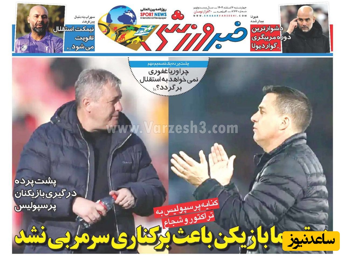 به گزارش سرویس ورزش ساعدنیوز، روزنامهها در شماره امروز خود به موضوعات مختلفی پرداختهاند؛ از گزارشهای داغ ورزشی و حواشی پیرامون تیمهای ملی گرفته تا تحلیلهای سیاسی و اقتصادی. در این میان، اخبار روز، تحلیلها و دیدگاههای تازهای به مخاطبان ارائه میدهند.