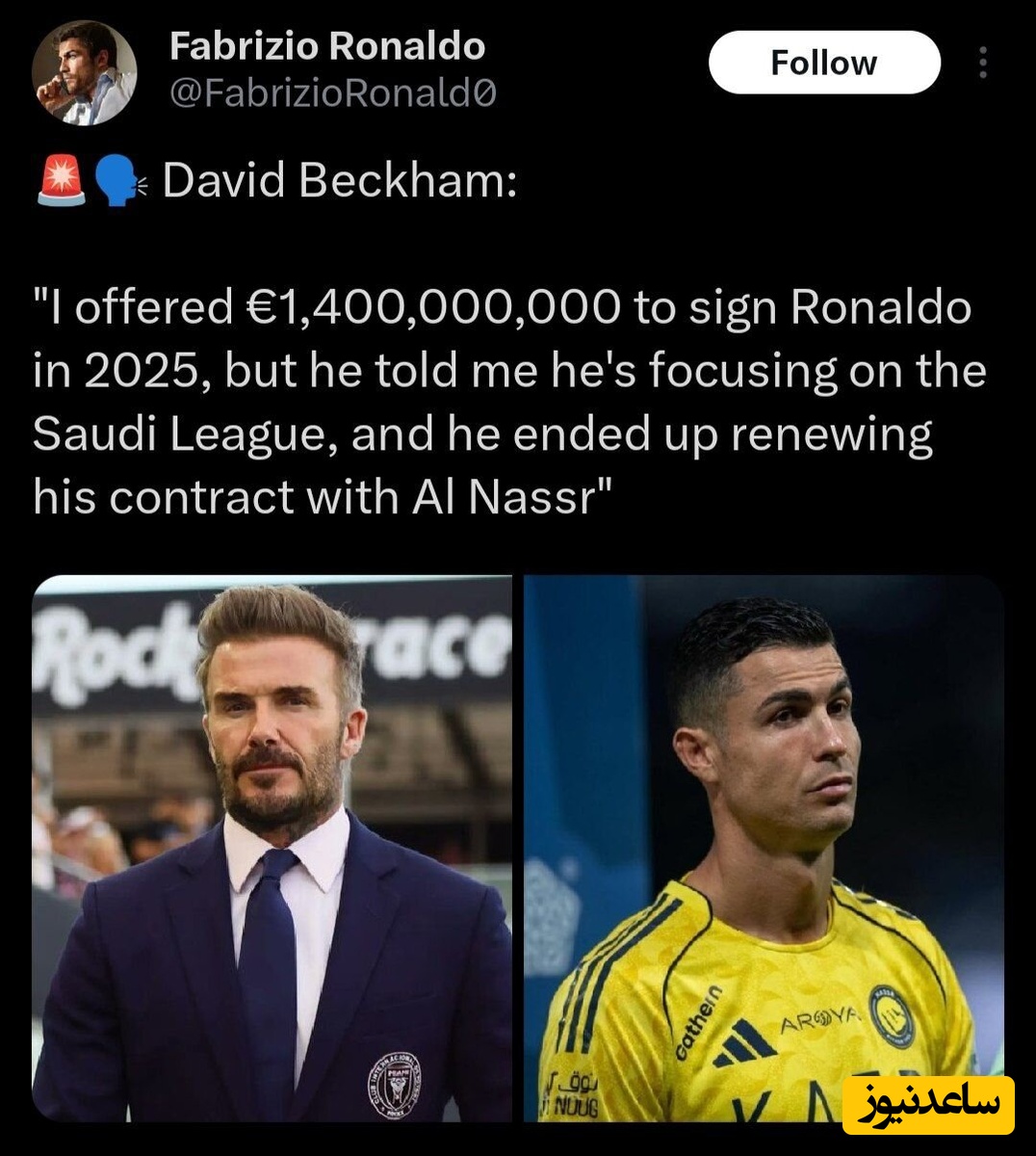 شدت این جنجال زمانی بیشتر شد که نقلقولهایی منتسب به فابریتزیو رومانو، متخصص اخبار نقلوانتقالات، منتشر شد؛ در این نقلقولها آمده بود که بکام پیشنهادی نجومی به ارزش 1.4 میلیارد یورو برای جذب رونالدو در سال 2025 آماده کرده، اما این بازیکن پرتغالی آن را رد کرده و ترجیح داده در لیگ عربستان بماند.