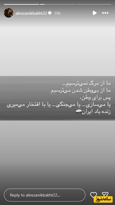 به گزارش سرویس ورزش ساعدنیوز، واکنشهای وطنپرستانه علیرضا نیکبخت در فضای مجازی همواره بازتابی از احساس تعلق عمیق او به کشور و مردمش بوده است. او در موقعیتهای مختلف، بهویژه در زمانهای حساس یا رخدادهای مهم ملی، با انتشار پیامها و تصاویری در شبکههای اجتماعی تلاش کرده تا همبستگی و وحدت را میان مخاطبان خود تقویت کند. لحن نوشتههای او اغلب صمیمی و پرشور است و نشان میدهد که دغدغههای ملی برایش صرفاً یک شعار نیست، بلکه بخشی از هویت شخصی او را شکل میدهد.