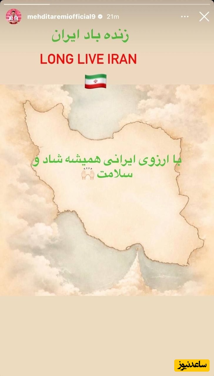 ساعدنیوز: مهدی طارمی استوری جدیدی را در صفحه اینستاگرام خود منتشر کرده است که در ادامه مشاهده میفرمایید.
