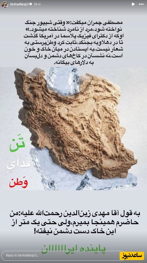 ساعدنیوز: فرشاد فرجی استوری جدیدی را در صفحه اینستاگرام خود منتشر کرده است که در ادامه مشاهده میفرمایید.