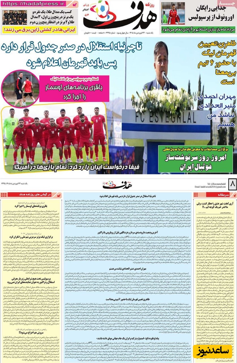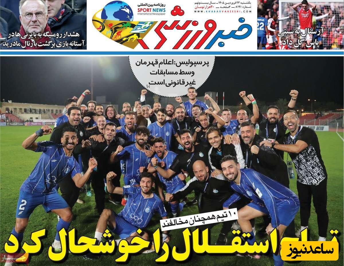 به گزارش سرویس ورزش ساعدنیوز، روزنامهها در شماره امروز خود به موضوعات مختلفی پرداختهاند؛ از گزارشهای داغ ورزشی و حواشی پیرامون تیمهای ملی گرفته تا تحلیلهای سیاسی و اقتصادی. در این میان، اخبار روز، تحلیلها و دیدگاههای تازهای به مخاطبان ارائه میدهند.