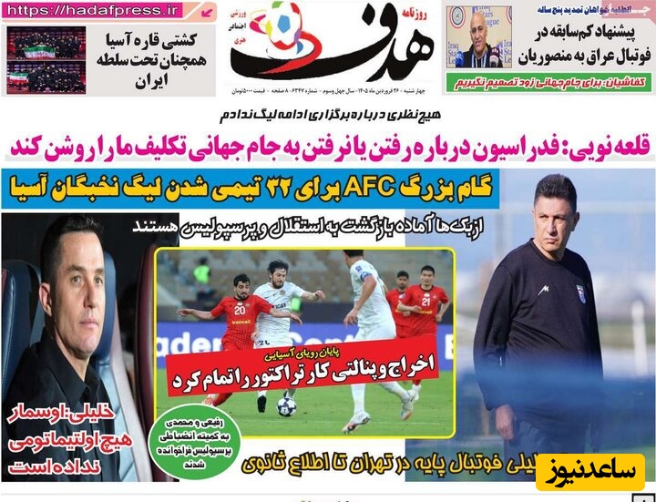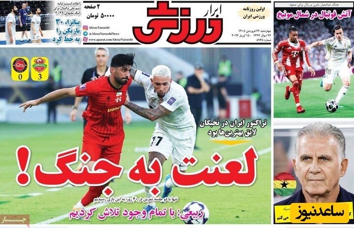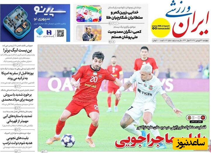 به گزارش سرویس ورزش ساعدنیوز، روزنامهها در شماره امروز خود به موضوعات مختلفی پرداختهاند؛ از گزارشهای داغ ورزشی و حواشی پیرامون تیمهای ملی گرفته تا تحلیلهای سیاسی و اقتصادی. در این میان، اخبار روز، تحلیلها و دیدگاههای تازهای به مخاطبان ارائه میدهند.