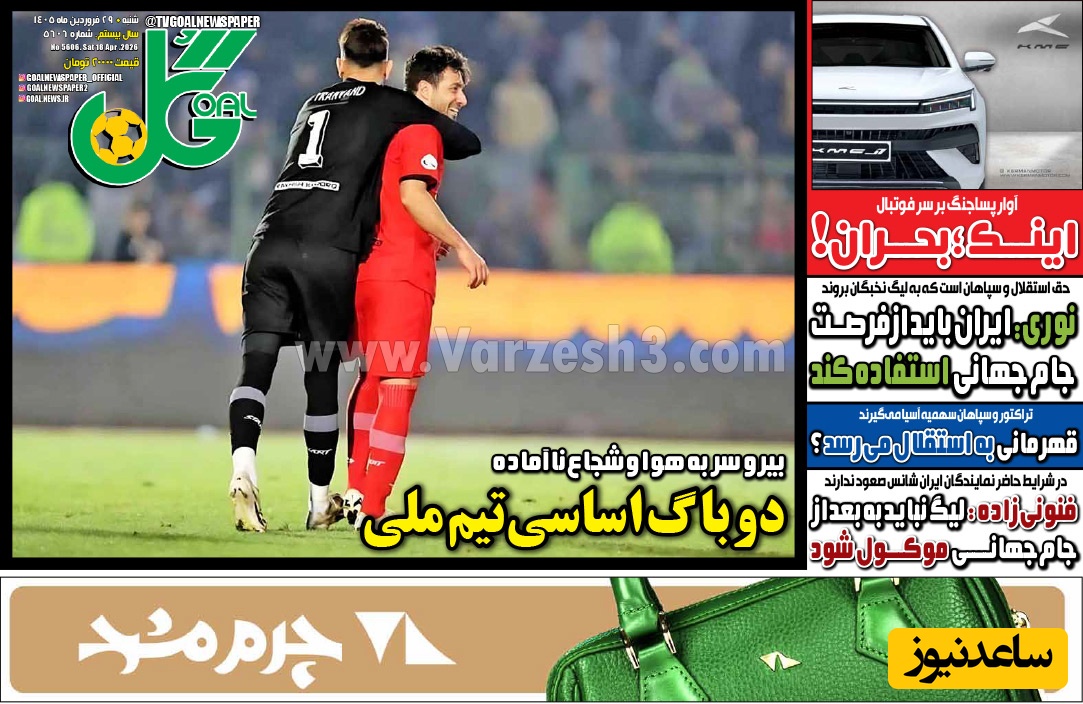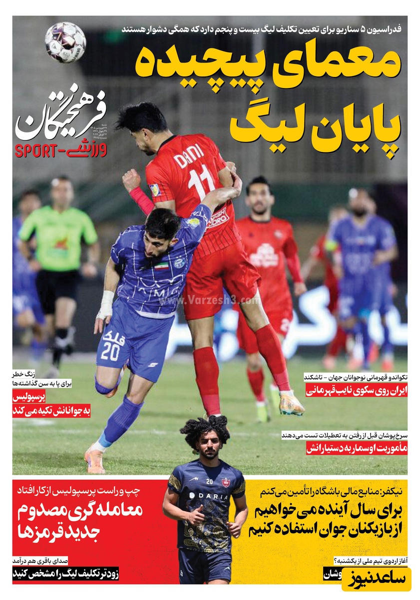 به گزارش سرویس ورزش ساعدنیوز، روزنامهها در شماره امروز خود به موضوعات مختلفی پرداختهاند؛ از گزارشهای داغ ورزشی و حواشی پیرامون تیمهای ملی گرفته تا تحلیلهای سیاسی و اقتصادی. در این میان، اخبار روز، تحلیلها و دیدگاههای تازهای به مخاطبان ارائه میدهند.