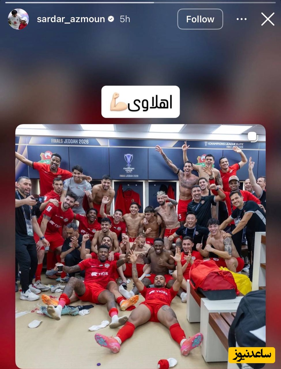 سردار پس از برتری سه بر دو شباب الاهلی مقابل بوریرام، تصویری از خوشحالی همتیمیهایش در رختکن را در صفحه اینستاگرام خود منتشر کرد.