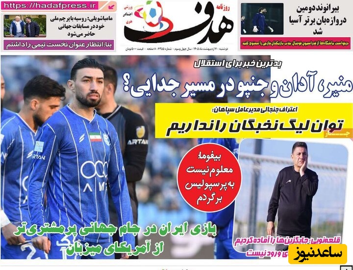به گزارش سرویس ورزش ساعدنیوز، روزنامهها در شماره امروز خود به موضوعات مختلفی پرداختهاند؛ از گزارشهای داغ ورزشی و حواشی پیرامون تیمهای ملی گرفته تا تحلیلهای سیاسی و اقتصادی. در این میان، اخبار روز، تحلیلها و دیدگاههای تازهای به مخاطبان ارائه میدهند.