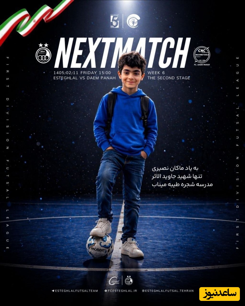 به گزارش سرویس ورزش ساعدنیوز، باشگاه استقلال پیش از دیدار خود مقابل تیم دائم پناه مشهد در لیگ دسته اول فوتسال، با انتشار پوستری ویژه، یاد ماکان نصیری را گرامی داشت.