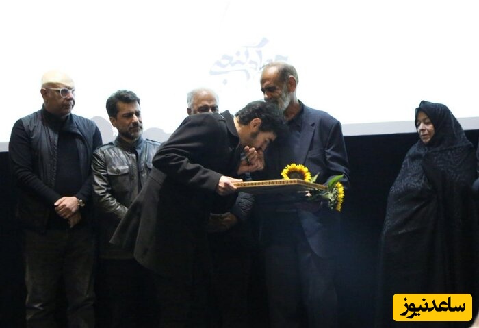در ادامه این مراسم از خانواده مرحوم گنجی تقدیر شد و شهاب حسینی بر دستان پدر او بوسه زد.